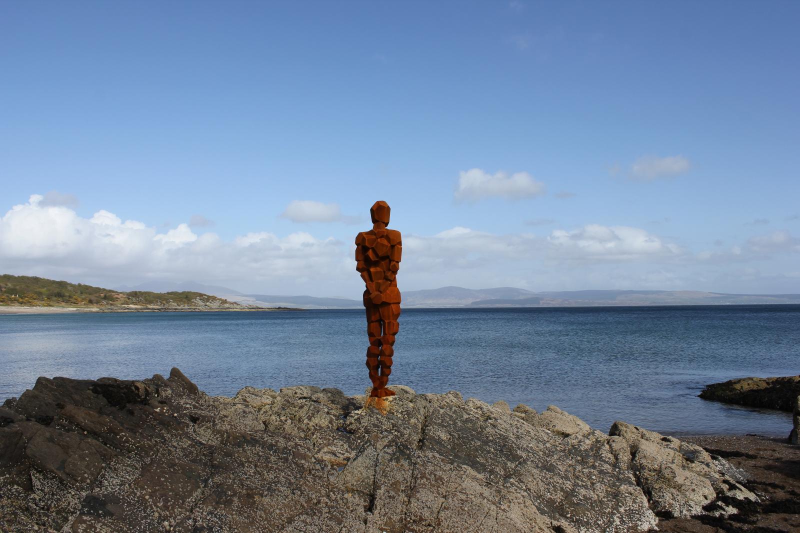 GRIP is a sculpture created for Saddell Bay by artist Antony Gormley as part of the LAND installation to mark the Landmark Trust’s 50th anniversary. The abstract human form gazes out over the Kilbrannan Sound to Arran from the rocks below Saddell Castle.